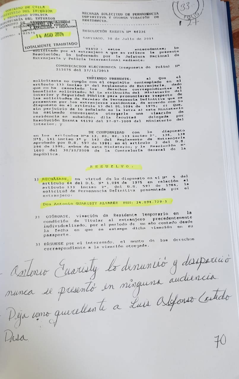 1er Querellante Antonio Guaristy hizo su denuncia y nunca más se presento a ninguna Audiencia... 2do Querellante Luis Alfonso Castedo Daza