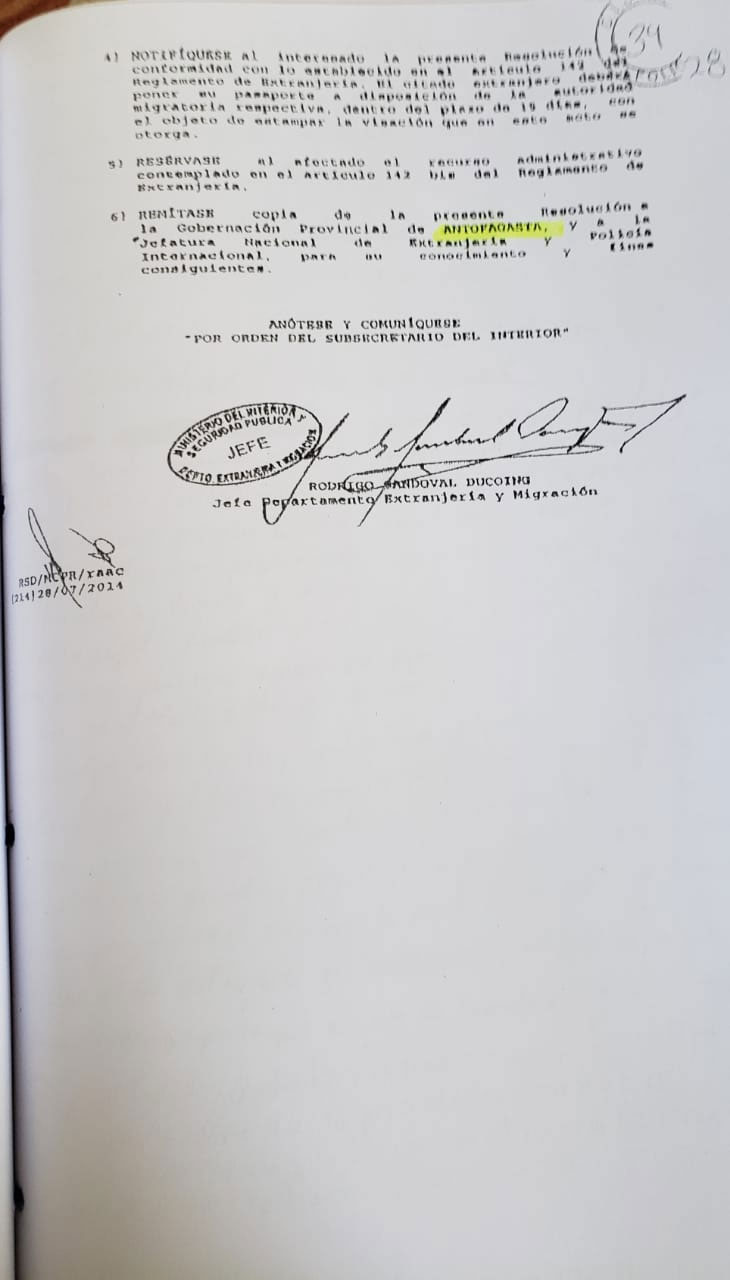 Resultado del Amparo Constitucional para que Migraciones acepte su error, y después de 10 meses de reclamos, recién poder pedir al SEGIP dispongan extender la Cédula de Identidad.