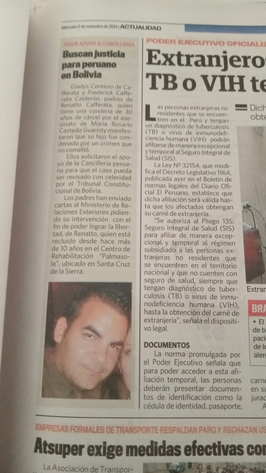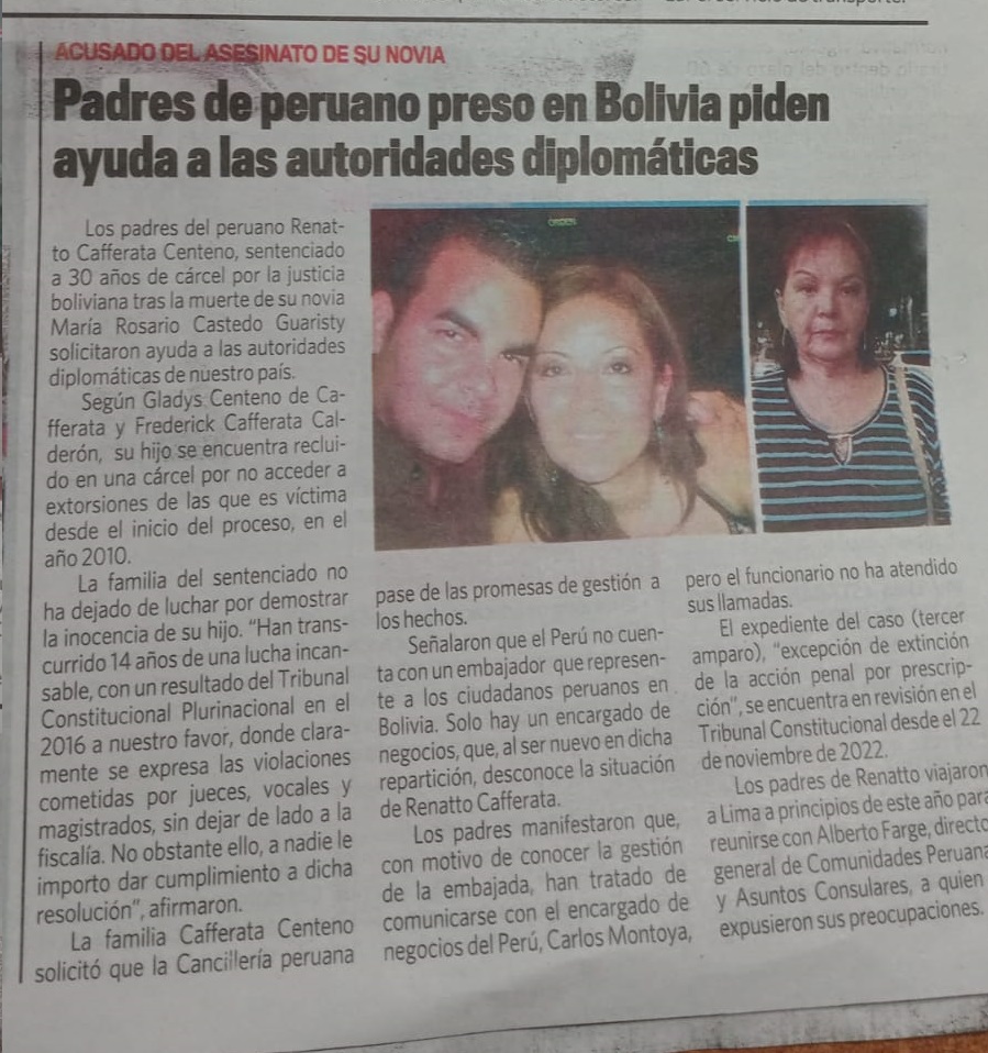 CONSULADO GENERAL DEL PERÚ EN SCZ HACE SEGUIMIENTO DEL CASO...SIN NINGUN RESULTADO