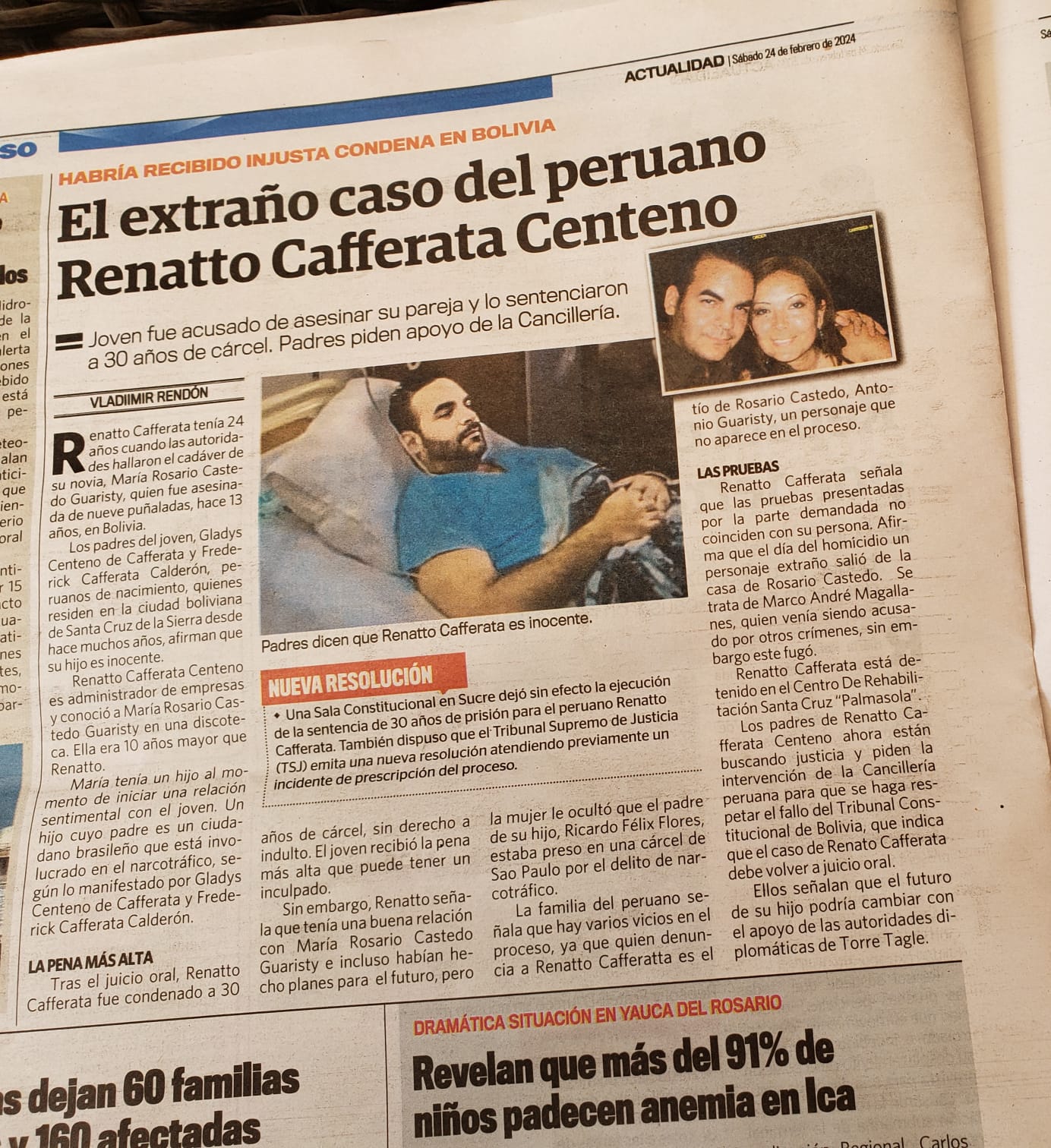 RENATO CAFFERATA, PRENSA PERUANA SIGUE DE CERCA EL CASO DE SU COMPATRIOTA DETENIDO EN BOLIVIA